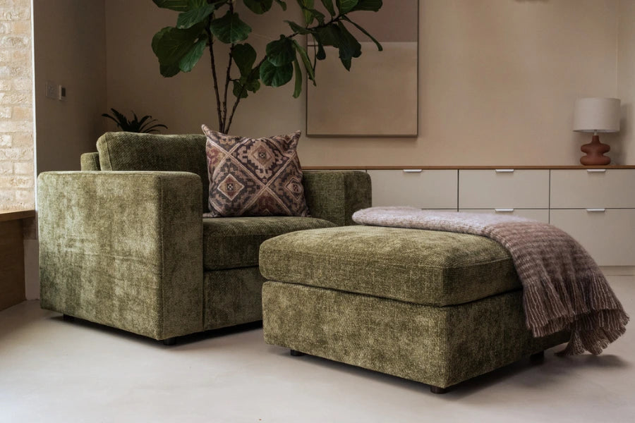 Aurelo Quiet/Rest Ottoman Footstool | Bouclé Emerald | Bridgman