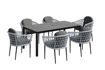 At the heart of this collection, our striking dining table boasts a sleek ceramic grey tabletop, combining durability with design. Pair with our matching Monaco Dining Armchairs and set the stage for unforgettable alfresco moments, whether hosting intimate gatherings or grand summer soirées.